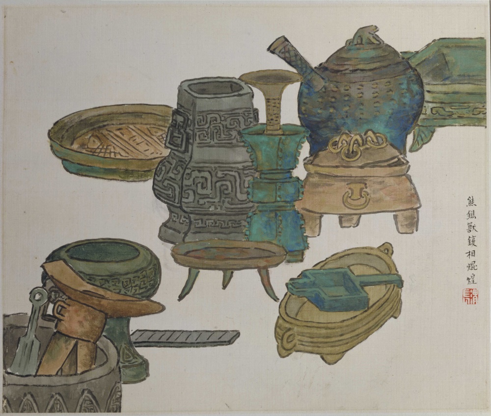 清朝 任熊 姚燮诗意图 册第十一开:熊鐎兽鍑相焜煌-中国古代书画-空若网