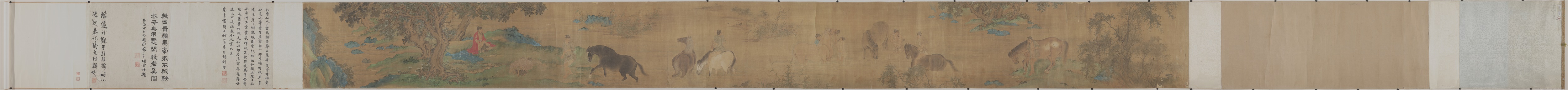 元朝 赵孟頫 花溪浴马图绢本28.1x155.5大都 会-中国古代书画-空若网