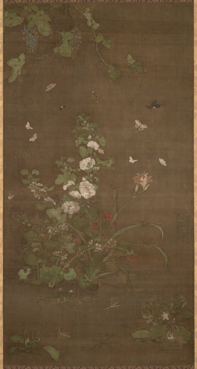元朝 佚名 草虫图--葡萄绢本128x68东京-中国古代书画-空若网