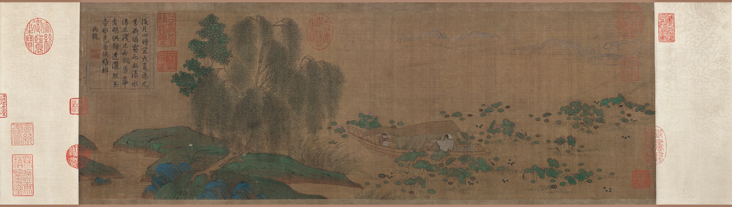 宋朝南宋 赵伯驹 莲舟新月图绢本24.2x591-中国古代书画-空若网
