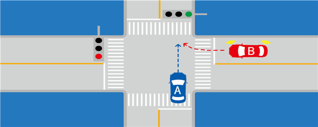 如图所示,B车具有优先通行权。