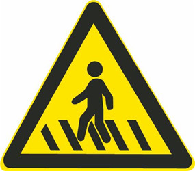 解释:注意行人标志,通常设置在人行横道前。看到此标志要减速慢行。