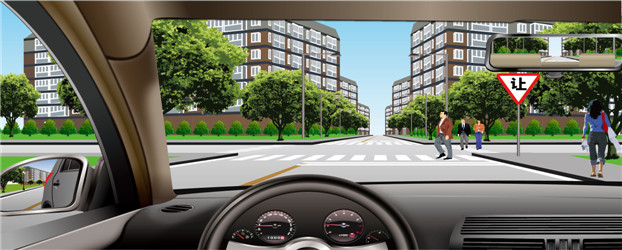 解释:如图所示,前方标志为减速让行标志。