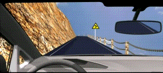 解释:由动画可知前方是向左急转弯道路,此时应当减速靠右行,避免对向有来车发生碰撞。