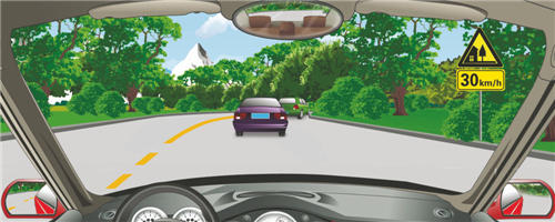 右侧标志提醒前方有村庄或集镇,建议速度30公里/小时。