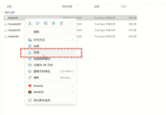下载好的字体文件,鼠标右键点击字体文件,