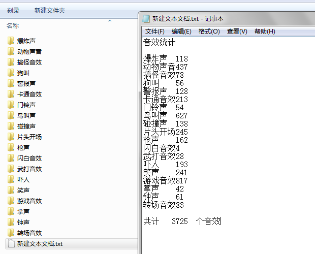 再送 爆炸声 118 动物声音437 搞怪音效78 狗叫 56 警报声 128 卡通音效213 门铃声 54 鸟叫声 627 碰撞声 138 片头开场245 枪声 162 闪白音效4 武打音效28 吓人 193 笑声 241 游戏音效817 掌声 42 钟声 61 转场音效83 共计 3725 个音效